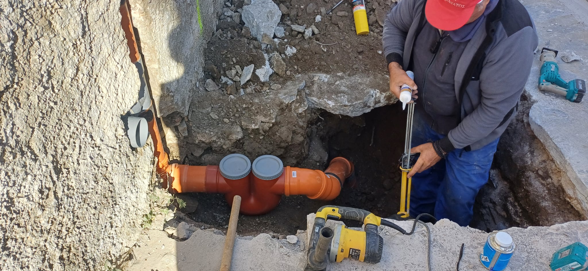Το έργο αφορά την ολοκλήρωση των εξωτερικών συνδέσεων αποχέτευσης των δημόσιων και ιδιωτικών κτιρίων με το υφιστάμενο δίκτυο, με κατασκευή φρεατίων, επεκτάσεις αγωγών και πλήρη αποκατάσταση των οδοστρωμάτων.